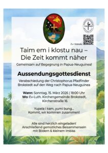 Die Zeit kommt näher, in der sich 8 Christophorus-Pfadfinder aus Brokstedt zu einem großen Abenteuer aufmachen. Vom 25. März bis 20. April 2026 tauschen sie ihre Heimat gegen den Qembung-Seket, einen Kirchenkreis an der Küste von Papua- Neuguinea.